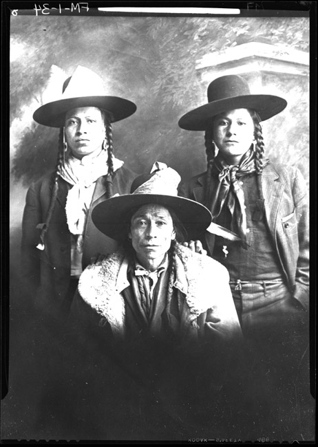 Description: Thomas Indian (left, died late 1950's), Andrew Alexander (middle), Windy Boy (right, married Andrew's sister)